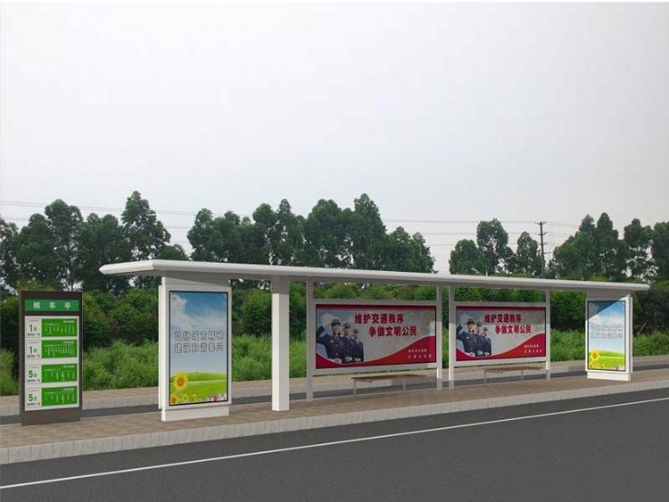 公交車候車亭一般是與公交站牌相配套的,為方便公交乘客候車時(shí)遮陽、防雨等,在車站、道路兩旁或綠化帶的港灣式公交�?空旧辖ㄔO(shè)的交通設(shè)施。由于城市公交的日益發(fā)達(dá),候車亭已發(fā)展成為城市一個(gè)不可或缺的重要組成部分,設(shè)計(jì)精美的候車亭也成為了城市一道美麗的風(fēng)景。 一般候車亭棚體主要頂棚、立柱、頂弓、廣告燈箱和坐凳組成,也有用隔板來代替廣告燈箱的。