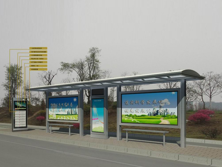 公交車(chē)候車(chē)亭一般是與公交站牌相配套的,為方便公交乘客候車(chē)時(shí)遮陽(yáng)、防雨等,在車(chē)站、道路兩旁或綠化帶的港灣式公交�?空旧辖ㄔO(shè)的交通設(shè)施。由于城市公交的日益發(fā)達(dá),候車(chē)亭已發(fā)展成為城市一個(gè)不可或缺的重要組成部分,設(shè)計(jì)精美的候車(chē)亭也成為了城市一道美麗的風(fēng)景。 一般候車(chē)亭棚體主要頂棚、立柱、頂弓、廣告燈箱和坐凳組成,也有用隔板來(lái)代替廣告燈箱的。