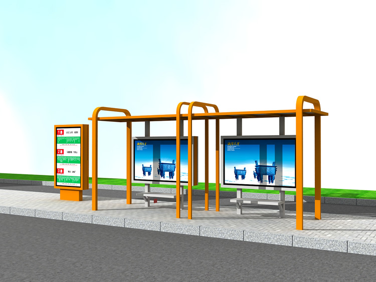 公交車候車亭一般是與公交站牌相配套的,為方便公交乘客候車時遮陽、防雨等,在車站、道路兩旁或綠化帶的港灣式公交�?空旧辖ㄔO(shè)的交通設(shè)施。由于城市公交的日益發(fā)達,候車亭已發(fā)展成為城市一個不可或缺的重要組成部分,設(shè)計精美的候車亭也成為了城市一道美麗的風景。 一般候車亭棚體主要頂棚、立柱、頂弓、廣告燈箱和坐凳組成,也有用隔板來代替廣告燈箱的。