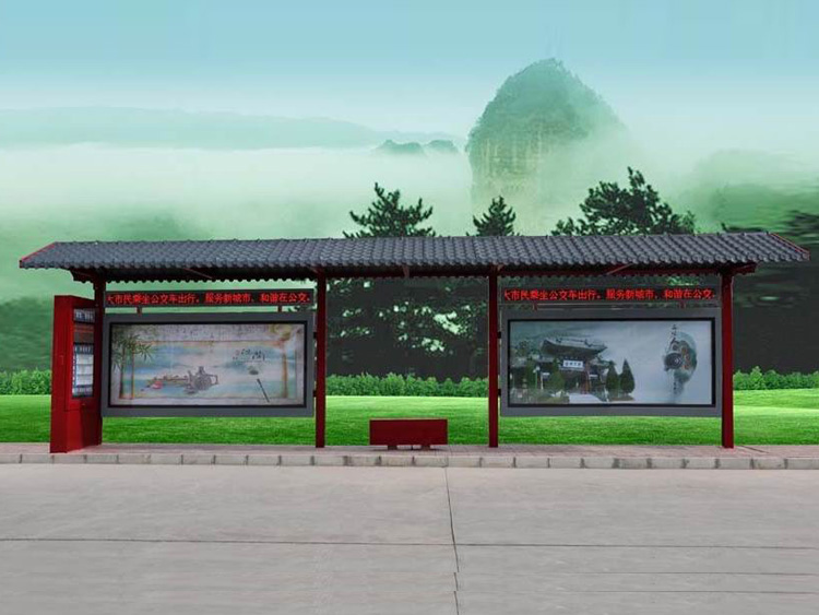 公交車候車亭一般是與公交站牌相配套的,為方便公交乘客候車時(shí)遮陽、防雨等,在車站、道路兩旁或綠化帶的港灣式公交�?空旧辖ㄔO(shè)的交通設(shè)施。由于城市公交的日益發(fā)達(dá),候車亭已發(fā)展成為城市一個(gè)不可或缺的重要組成部分,設(shè)計(jì)精美的候車亭也成為了城市一道美麗的風(fēng)景。 一般候車亭棚體主要頂棚、立柱、頂弓、廣告燈箱和坐凳組成,也有用隔板來代替廣告燈箱的。