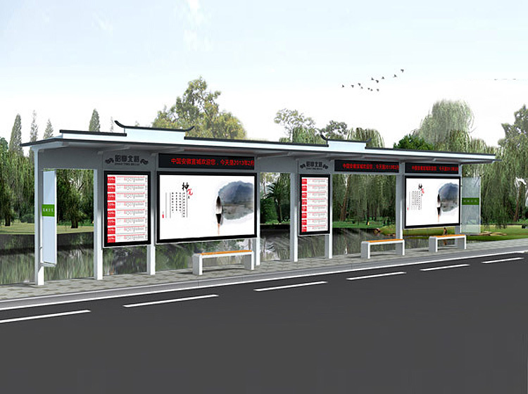 公交車候車亭一般是與公交站牌相配套的,為方便公交乘客候車時(shí)遮陽、防雨等,在車站、道路兩旁或綠化帶的港灣式公交�?空旧辖ㄔO(shè)的交通設(shè)施。由于城市公交的日益發(fā)達(dá),候車亭已發(fā)展成為城市一個(gè)不可或缺的重要組成部分,設(shè)計(jì)精美的候車亭也成為了城市一道美麗的風(fēng)景。 一般候車亭棚體主要頂棚、立柱、頂弓、廣告燈箱和坐凳組成,也有用隔板來代替廣告燈箱的。