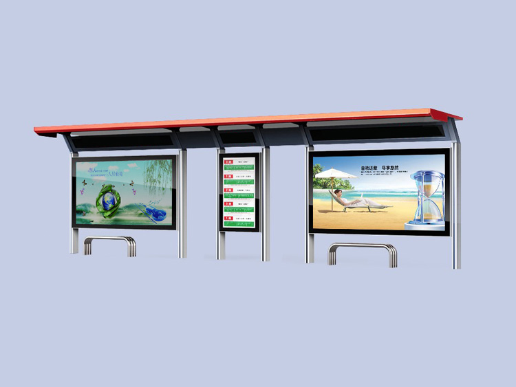 公交車候車亭一般是與公交站牌相配套的,為方便公交乘客候車時(shí)遮陽、防雨等,在車站、道路兩旁或綠化帶的港灣式公交停靠站上建設(shè)的交通設(shè)施。由于城市公交的日益發(fā)達(dá),候車亭已發(fā)展成為城市一個(gè)不可或缺的重要組成部分,設(shè)計(jì)精美的候車亭也成為了城市一道美麗的風(fēng)景。 一般候車亭棚體主要頂棚、立柱、頂弓、廣告燈箱和坐凳組成,也有用隔板來代替廣告燈箱的。