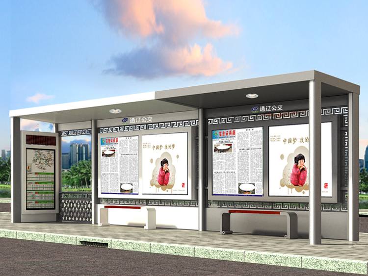 公交車候車亭一般是與公交站牌相配套的,為方便公交乘客候車時遮陽、防雨等,在車站、道路兩旁或綠化帶的港灣式公交�?空旧辖ㄔO的交通設施。由于城市公交的日益發(fā)達,候車亭已發(fā)展成為城市一個不可或缺的重要組成部分,設計精美的候車亭也成為了城市一道美麗的風景。 一般候車亭棚體主要頂棚、立柱、頂弓、廣告燈箱和坐凳組成,也有用隔板來代替廣告燈箱的。
