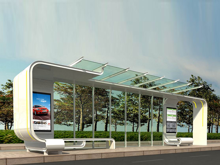 公交車候車亭一般是與公交站牌相配套的,為方便公交乘客候車時遮陽、防雨等,在車站、道路兩旁或綠化帶的港灣式公交�?空旧辖ㄔO(shè)的交通設(shè)施。由于城市公交的日益發(fā)達,候車亭已發(fā)展成為城市一個不可或缺的重要組成部分,設(shè)計精美的候車亭也成為了城市一道美麗的風景。 一般候車亭棚體主要頂棚、立柱、頂弓、廣告燈箱和坐凳組成,也有用隔板來代替廣告燈箱的。