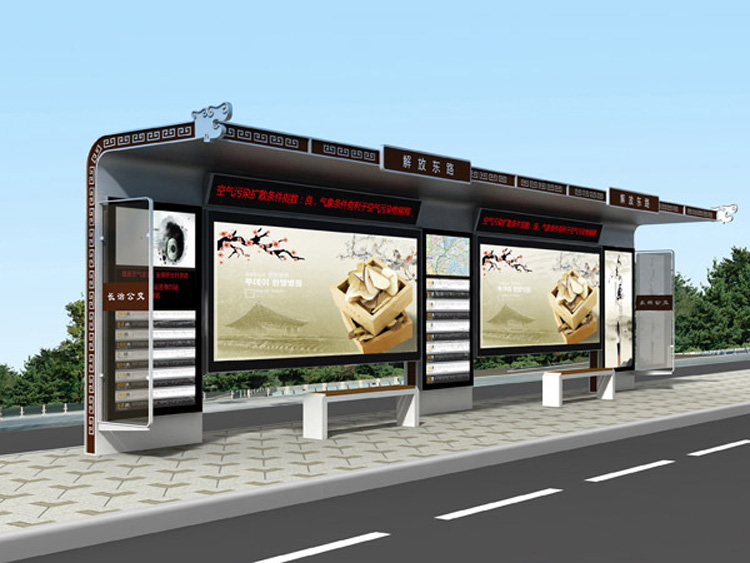 公交車候車亭一般是與公交站牌相配套的,為方便公交乘客候車時遮陽、防雨等,在車站、道路兩旁或綠化帶的港灣式公交�?空旧辖ㄔO的交通設施。由于城市公交的日益發(fā)達,候車亭已發(fā)展成為城市一個不可或缺的重要組成部分,設計精美的候車亭也成為了城市一道美麗的風景。 一般候車亭棚體主要頂棚、立柱、頂弓、廣告燈箱和坐凳組成,也有用隔板來代替廣告燈箱的。