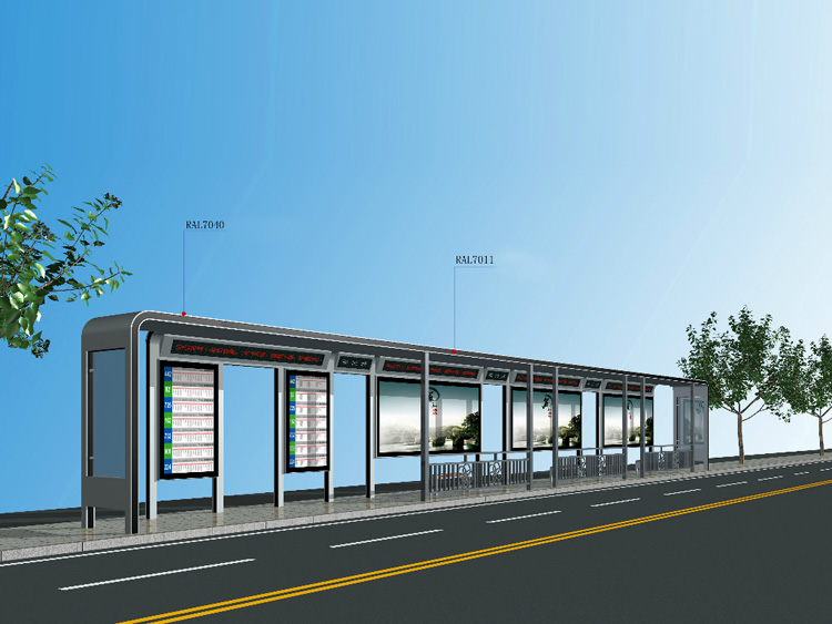 公交車候車亭一般是與公交站牌相配套的,為方便公交乘客候車時遮陽、防雨等,在車站、道路兩旁或綠化帶的港灣式公交�?空旧辖ㄔO的交通設施。由于城市公交的日益發(fā)達,候車亭已發(fā)展成為城市一個不可或缺的重要組成部分,設計精美的候車亭也成為了城市一道美麗的風景。 一般候車亭棚體主要頂棚、立柱、頂弓、廣告燈箱和坐凳組成,也有用隔板來代替廣告燈箱的。