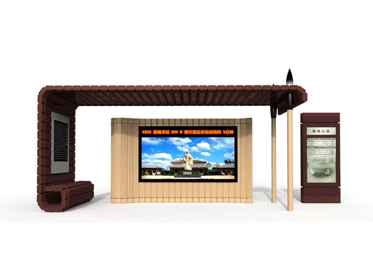 公交車候車亭一般是與公交站牌相配套的,為方便公交乘客候車時遮陽、防雨等,在車站、道路兩旁或綠化帶的港灣式公交停靠站上建設的交通設施。由于城市公交的日益發(fā)達,候車亭已發(fā)展成為城市一個不可或缺的重要組成部分,設計精美的候車亭也成為了城市一道美麗的風景。 一般候車亭棚體主要頂棚、立柱、頂弓、廣告燈箱和坐凳組成,也有用隔板來代替廣告燈箱的。
