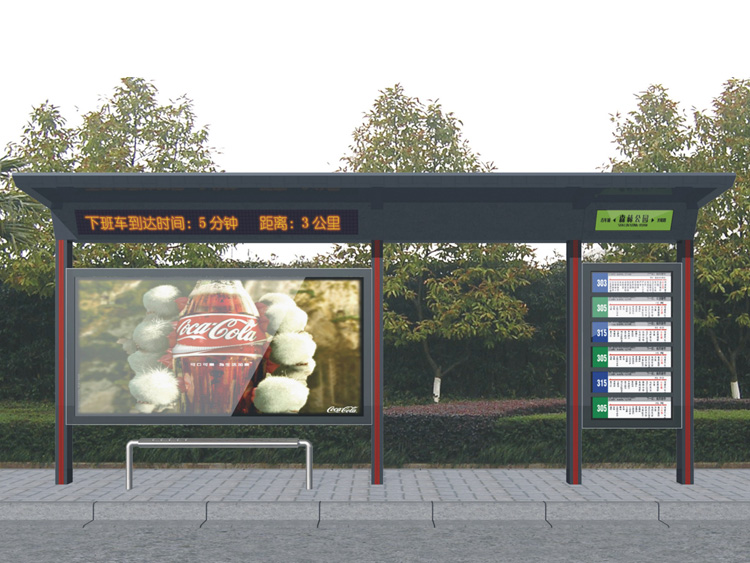 公交車候車亭一般是與公交站牌相配套的,為方便公交乘客候車時遮陽、防雨等,在車站、道路兩旁或綠化帶的港灣式公交停靠站上建設(shè)的交通設(shè)施。由于城市公交的日益發(fā)達,候車亭已發(fā)展成為城市一個不可或缺的重要組成部分,設(shè)計精美的候車亭也成為了城市一道美麗的風(fēng)景。 一般候車亭棚體主要頂棚、立柱、頂弓、廣告燈箱和坐凳組成,也有用隔板來代替廣告燈箱的。