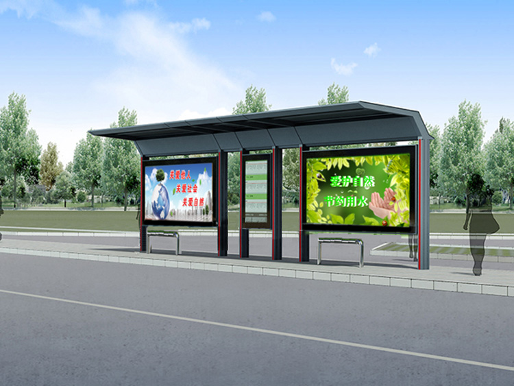 公交車候車亭一般是與公交站牌相配套的,為方便公交乘客候車時(shí)遮陽、防雨等,在車站、道路兩旁或綠化帶的港灣式公交�?空旧辖ㄔO(shè)的交通設(shè)施。由于城市公交的日益發(fā)達(dá),候車亭已發(fā)展成為城市一個(gè)不可或缺的重要組成部分,設(shè)計(jì)精美的候車亭也成為了城市一道美麗的風(fēng)景。 一般候車亭棚體主要頂棚、立柱、頂弓、廣告燈箱和坐凳組成,也有用隔板來代替廣告燈箱的。