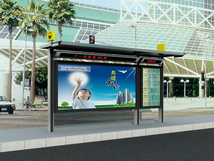 公交車候車亭一般是與公交站牌相配套的,為方便公交乘客候車時(shí)遮陽、防雨等,在車站、道路兩旁或綠化帶的港灣式公交�?空旧辖ㄔO(shè)的交通設(shè)施。由于城市公交的日益發(fā)達(dá),候車亭已發(fā)展成為城市一個(gè)不可或缺的重要組成部分,設(shè)計(jì)精美的候車亭也成為了城市一道美麗的風(fēng)景。 一般候車亭棚體主要頂棚、立柱、頂弓、廣告燈箱和坐凳組成,也有用隔板來代替廣告燈箱的。