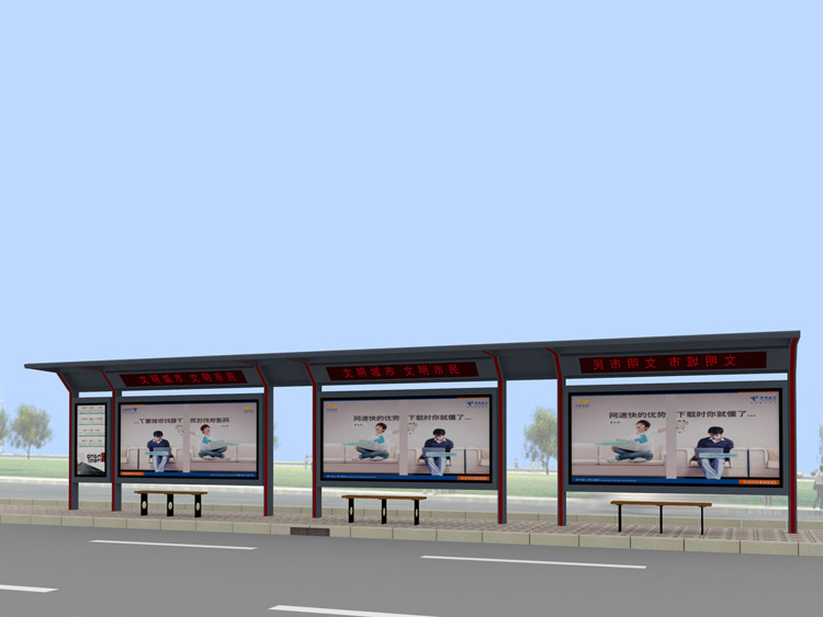 公交車候車亭一般是與公交站牌相配套的,為方便公交乘客候車時(shí)遮陽、防雨等,在車站、道路兩旁或綠化帶的港灣式公交停靠站上建設(shè)的交通設(shè)施。由于城市公交的日益發(fā)達(dá),候車亭已發(fā)展成為城市一個(gè)不可或缺的重要組成部分,設(shè)計(jì)精美的候車亭也成為了城市一道美麗的風(fēng)景。 一般候車亭棚體主要頂棚、立柱、頂弓、廣告燈箱和坐凳組成,也有用隔板來代替廣告燈箱的。