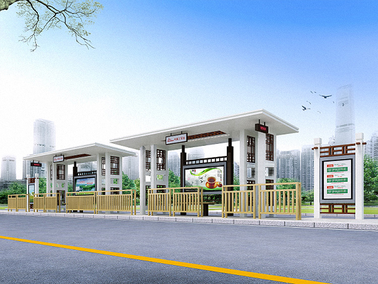 公交車候車亭一般是與公交站牌相配套的,為方便公交乘客候車時(shí)遮陽(yáng)、防雨等,在車站、道路兩旁或綠化帶的港灣式公交�?空旧辖ㄔO(shè)的交通設(shè)施。由于城市公交的日益發(fā)達(dá),候車亭已發(fā)展成為城市一個(gè)不可或缺的重要組成部分,設(shè)計(jì)精美的候車亭也成為了城市一道美麗的風(fēng)景。 一般候車亭棚體主要頂棚、立柱、頂弓、廣告燈箱和坐凳組成,也有用隔板來(lái)代替廣告燈箱的。