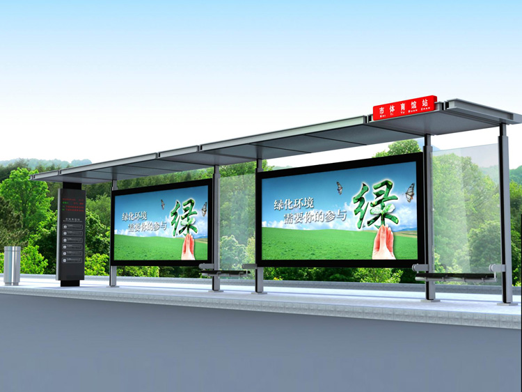 公交車候車亭一般是與公交站牌相配套的,為方便公交乘客候車時遮陽、防雨等,在車站、道路兩旁或綠化帶的港灣式公交�?空旧辖ㄔO的交通設施。由于城市公交的日益發(fā)達,候車亭已發(fā)展成為城市一個不可或缺的重要組成部分,設計精美的候車亭也成為了城市一道美麗的風景。 一般候車亭棚體主要頂棚、立柱、頂弓、廣告燈箱和坐凳組成,也有用隔板來代替廣告燈箱的。